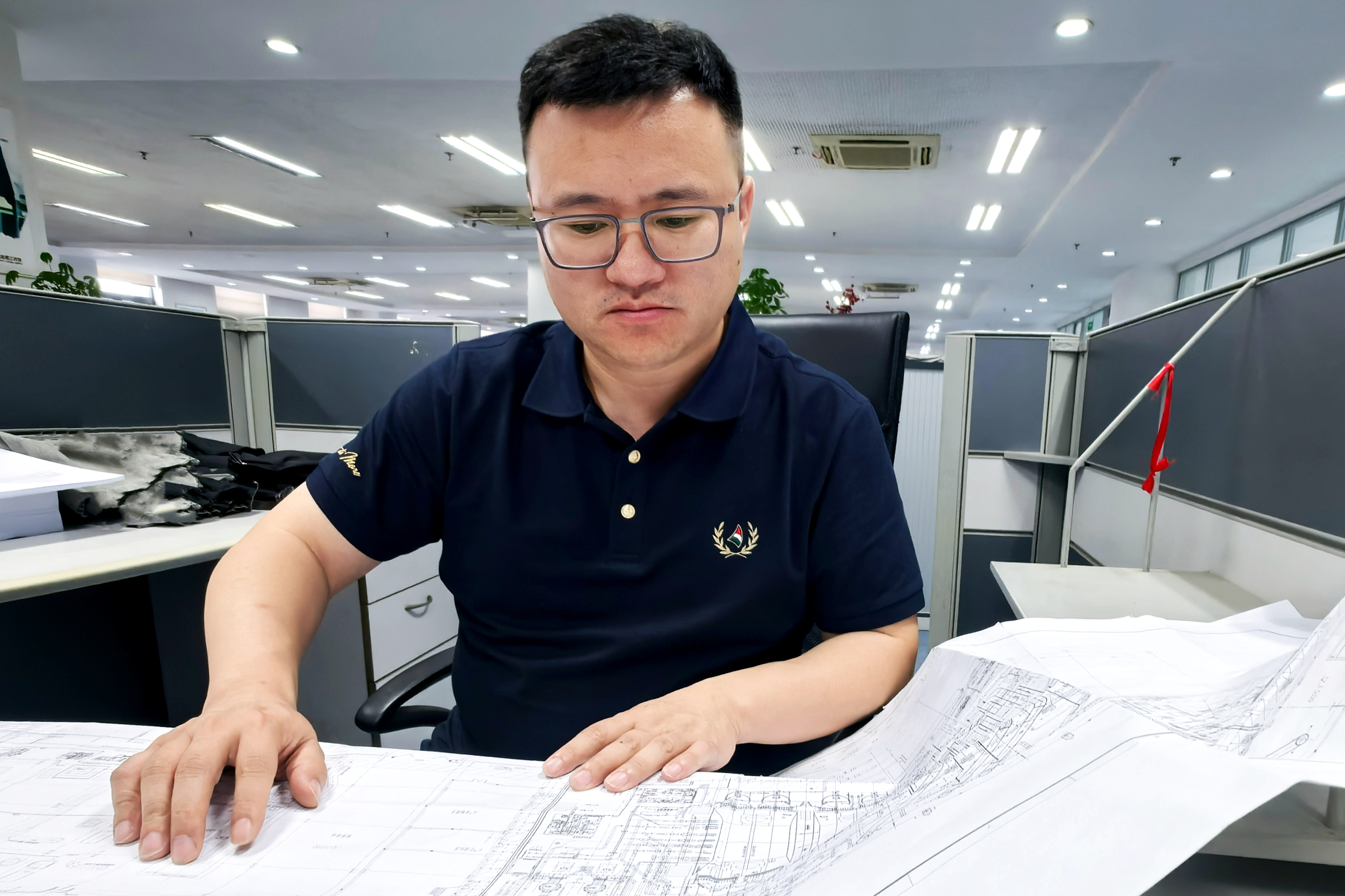 最紧张的一次“抢图战”发生在4月12日。现场突然发现 6号机组循环水管沟走向与地勘报告存在偏差,急需对应的桩位图调整基础设计。车欣炜带着施工方的实测数据,在设计院结构专业整整协调16小时:从说服主设启动加急流程,到协调勘察专业复核数据,再到陪着绘图员逐根桩号核对坐标,最终在次日清晨6点完成5册桩位图的电子版确认。图纸通过邮箱即时发回现场,他靠在设计院走廊的沙发上短暂休息,手机屏幕还显示着与现场负责人的对话:“图已发,注意查收。”