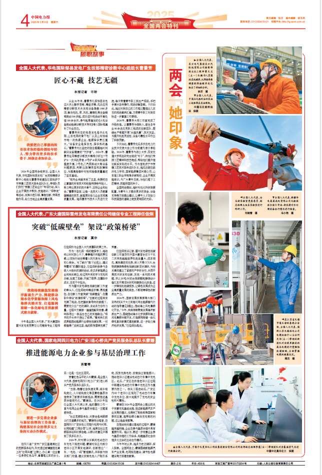 今年是全国人大代表、广东大唐国际雷州发电有限责任公司继保专业工程师任佳炯作为全国人大代表履职的第三年。
