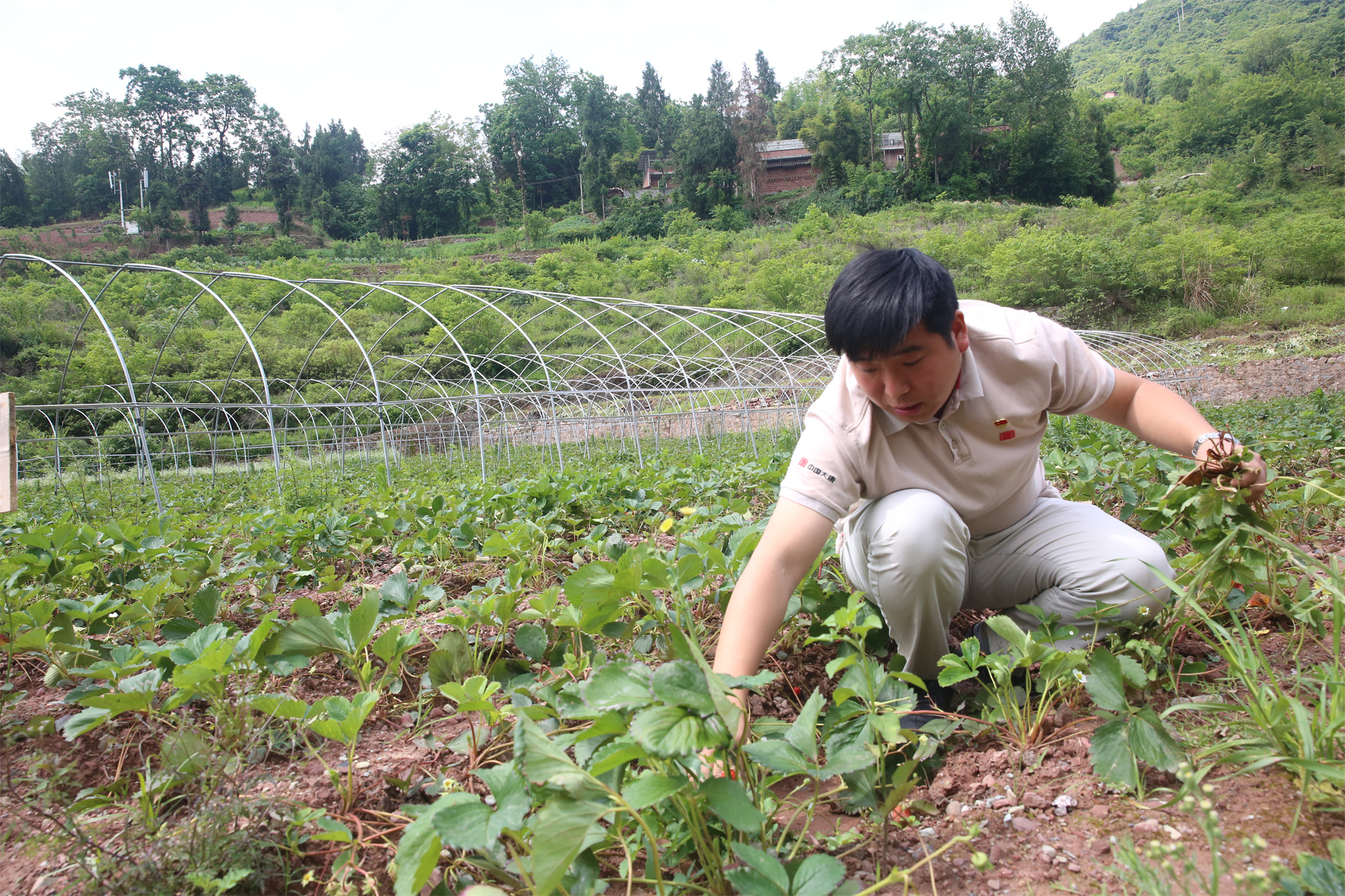 精心照管草莓园