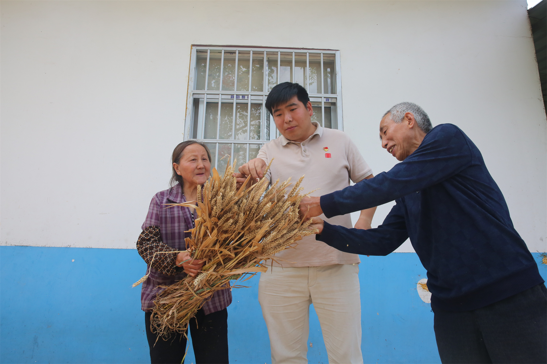 随后,方名兴看到院坝里晾晒的麦子,便拿起一把麦穗仔细查看,默默计算着小麦产量。