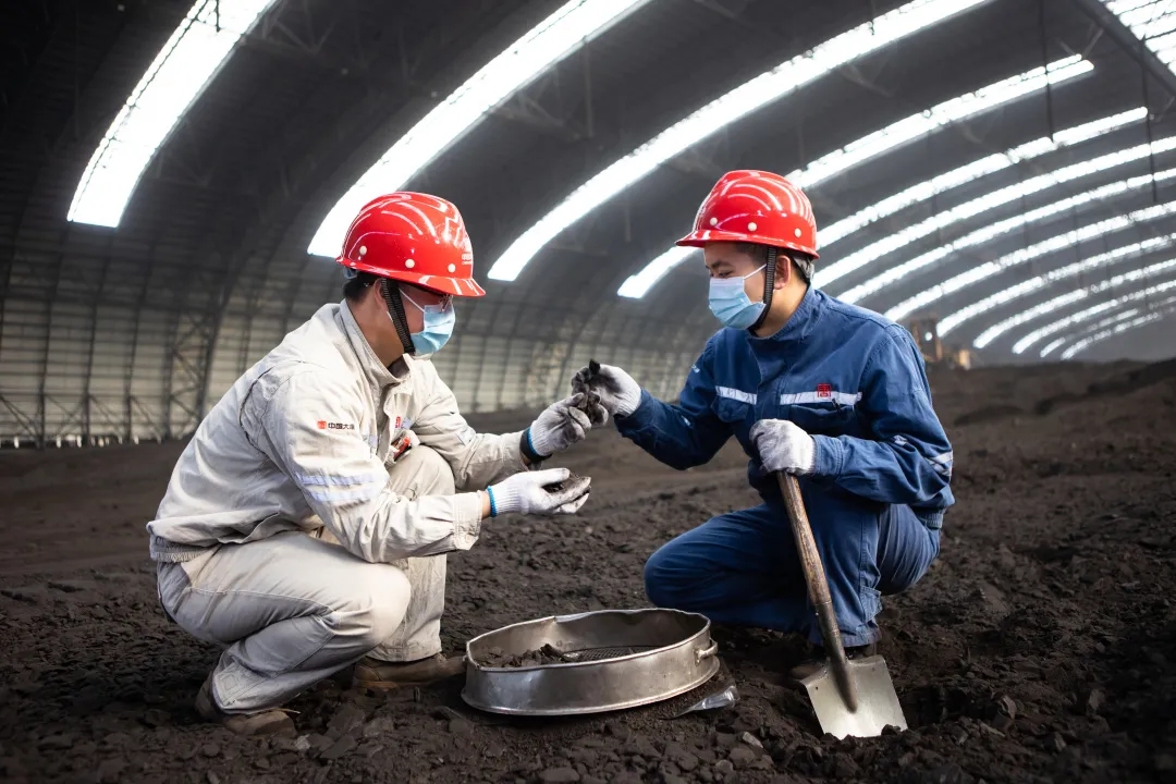 燃料质检员在检查煤质