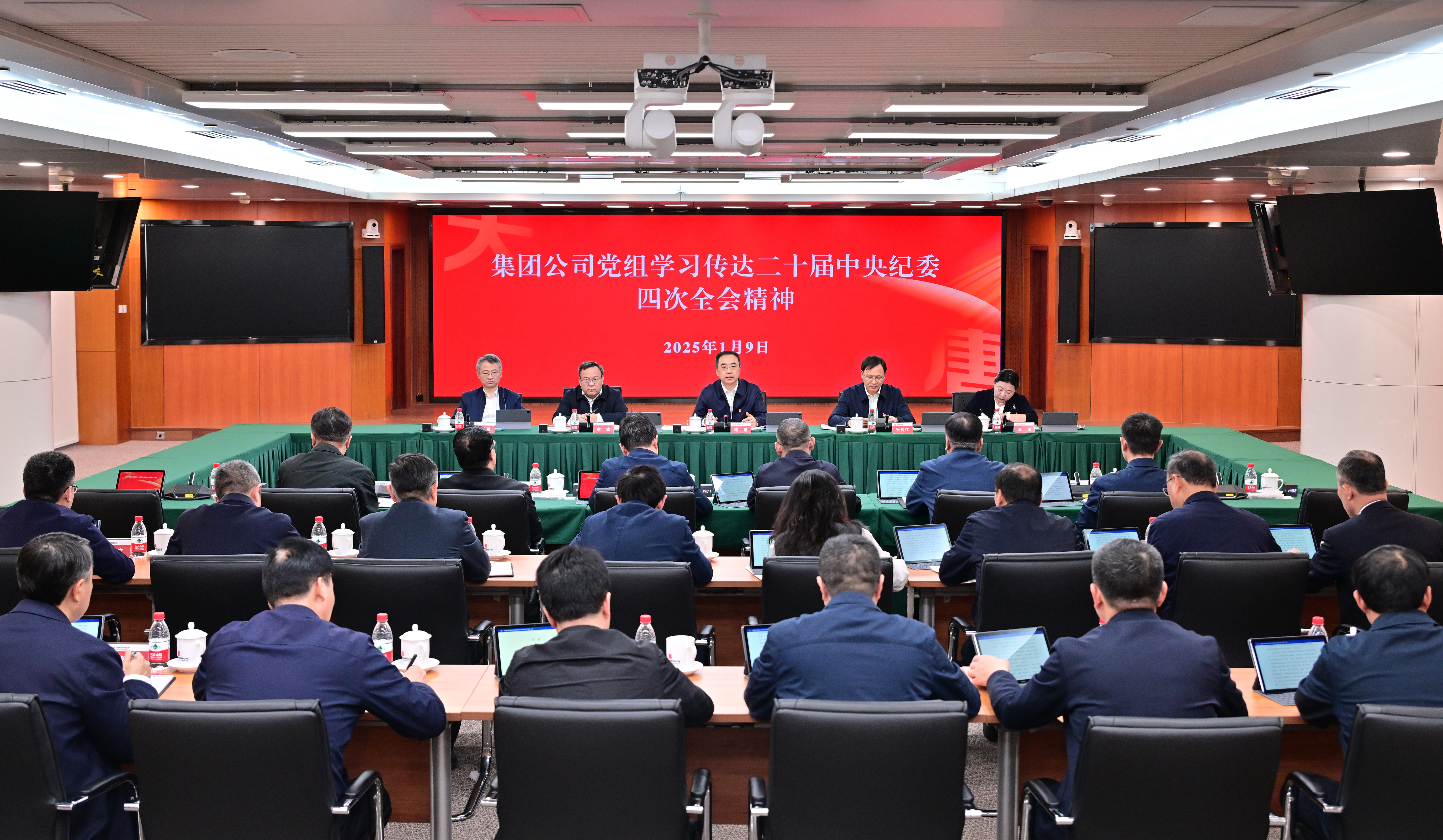 本网讯  1月9日,PA视讯集团有限公司党组书记、董事长邹磊主持召开会议,传达学习二十届中央纪委四次全会精神,研究贯彻落实举措。集团公司领导张传江、余波、王瑛、陶云鹏、苟伟、李建伟、王海腾参加会议。