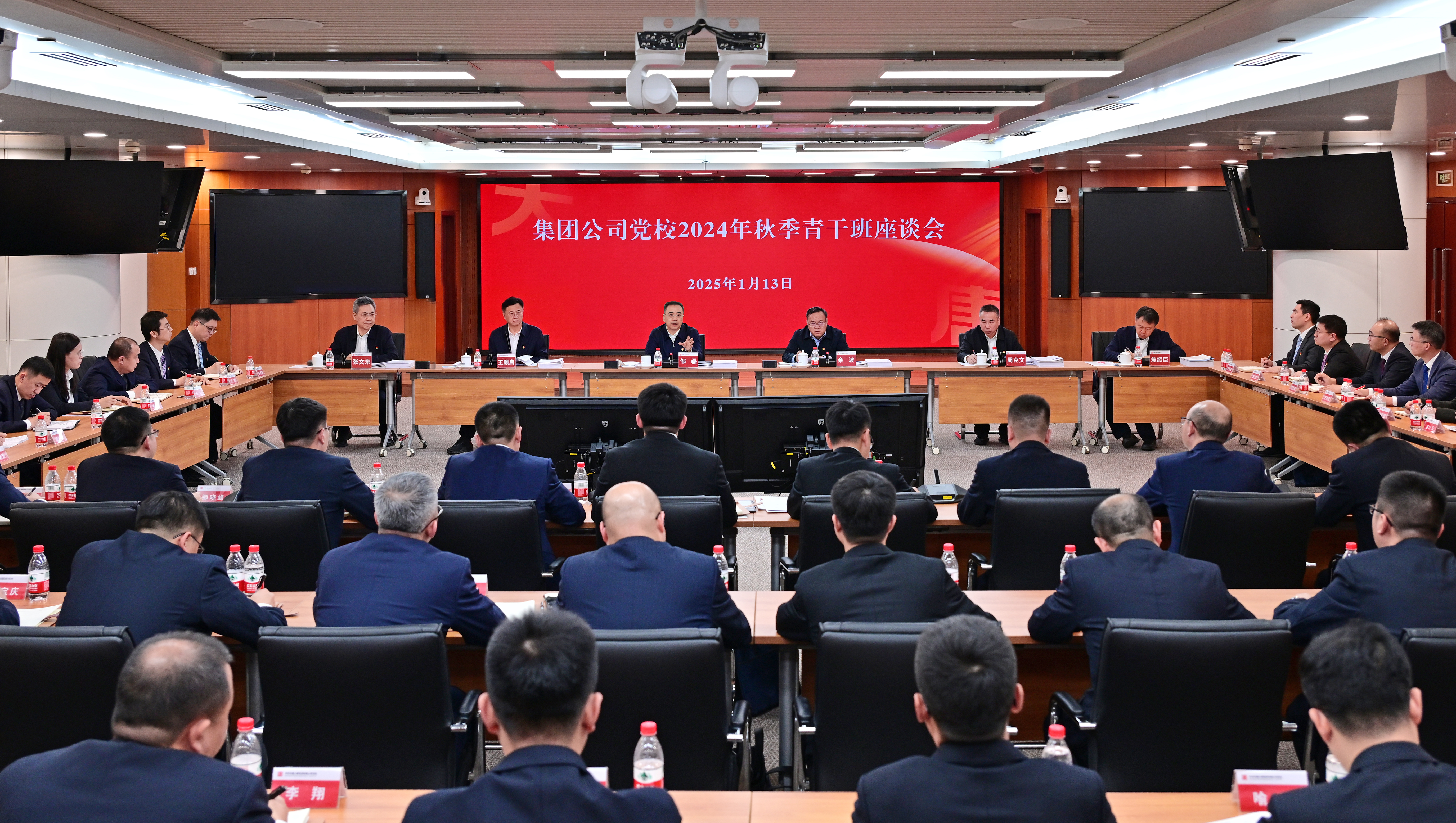 本网讯 1月13日,集团公司党校2024年秋季青年干部培训班座谈会在总部举行。集团公司党组书记、董事长邹磊与学员们座谈并提出希望。集团公司董事、党组副书记、党校校长余波主持座谈会。