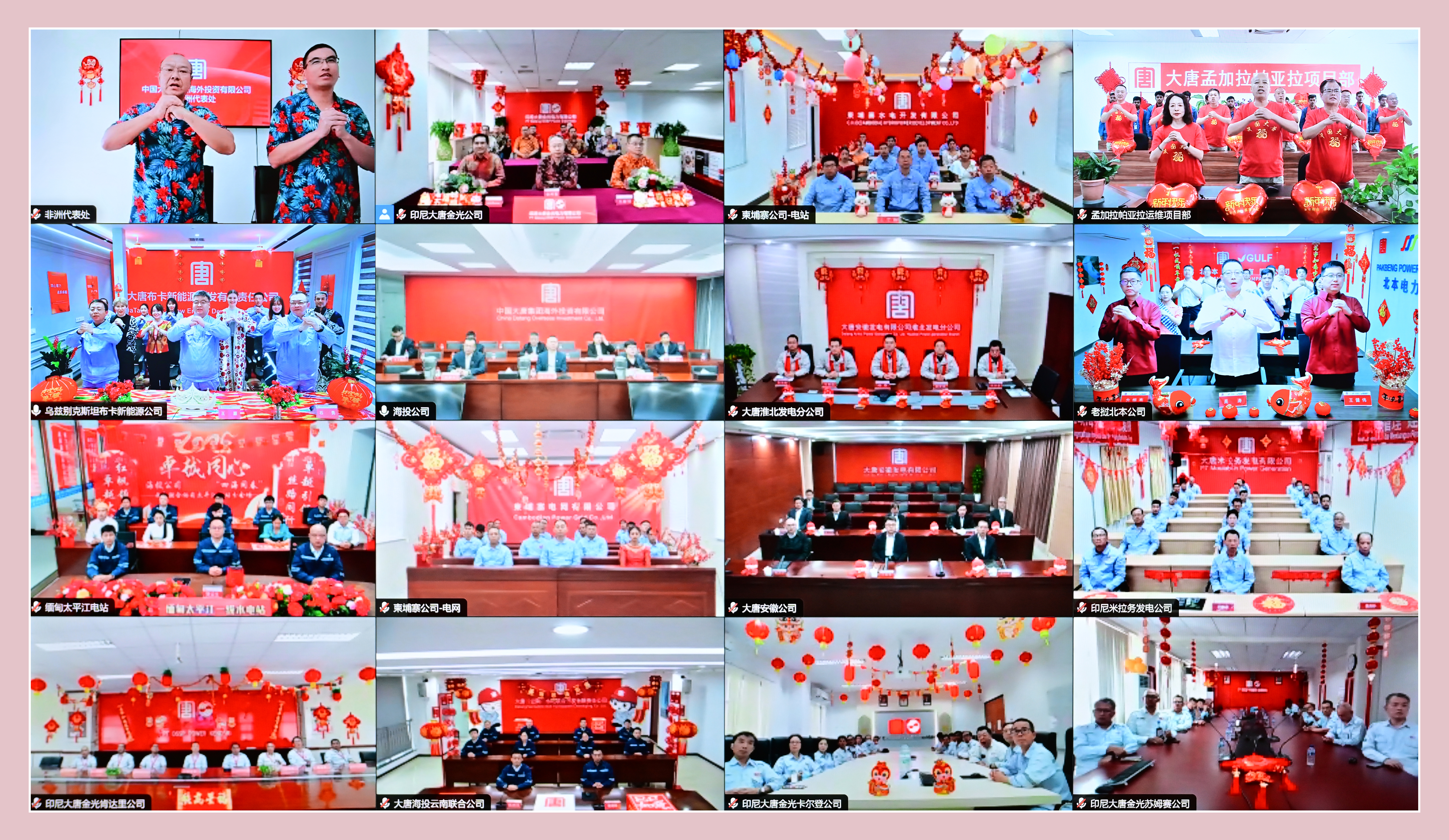 本网讯 “可敬的海外同志们,大家辛苦了!”“祝愿大家度过一个祥和喜庆的春节,祝愿大家在海外工作平平安安、顺顺利利、心想事成!”1月26日,在农历乙巳蛇年来临之际,PA视讯集团有限公司召开2025年境外机构新春慰问会。集团公司党组书记、董事长邹磊以视频连线方式,代表集团公司党组向奋战在境外一线的干部职工及家属拜年,向他们致以真切的关怀慰问及美好的新春祝福。
