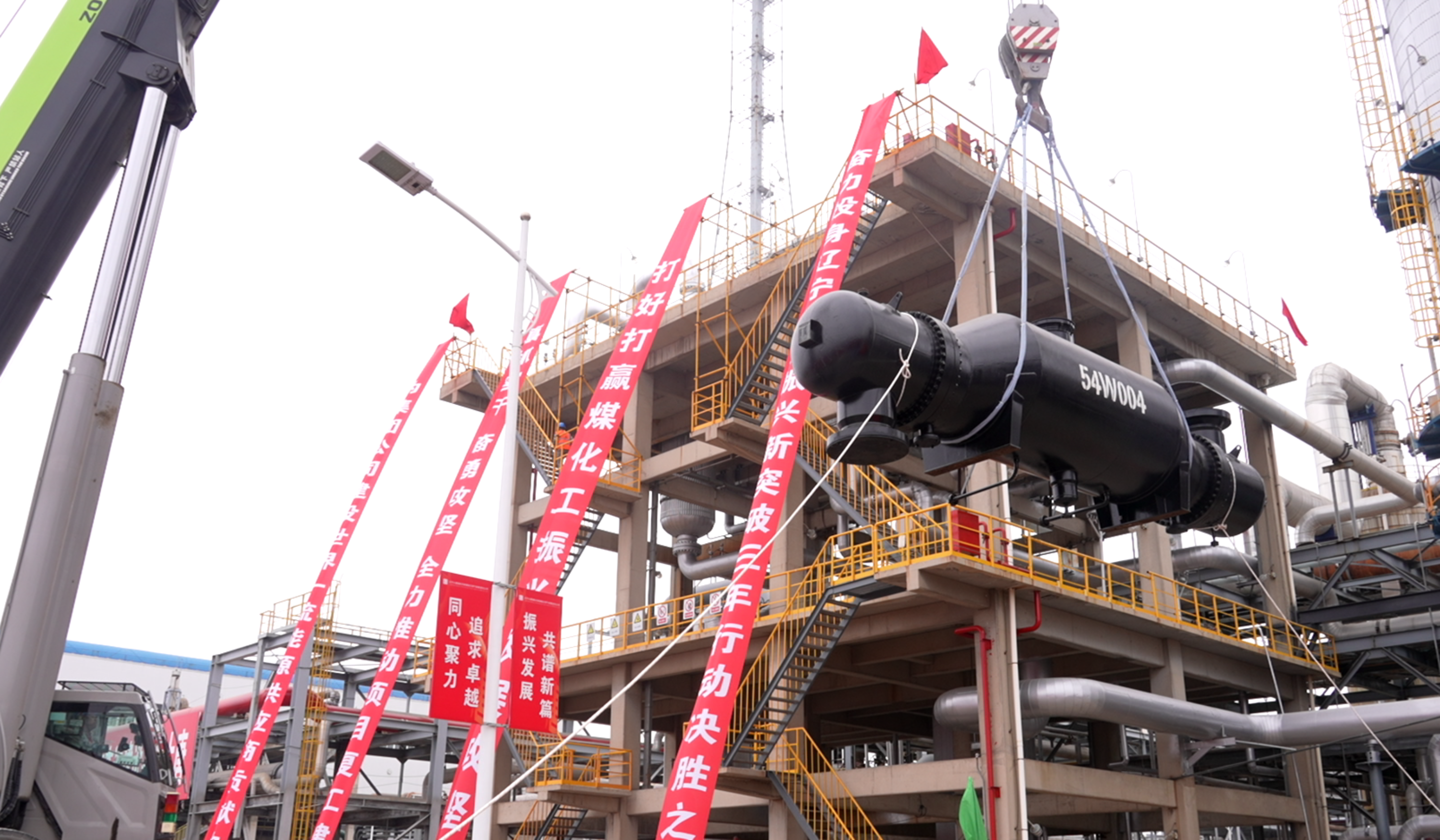 本网讯 10月15日上午,在PA视讯集团有限公司阜新煤制天然气项目复工建设动员会现场,随着最后一项大型装备吊装作业顺利完成,项目进入全面复工建设阶段。