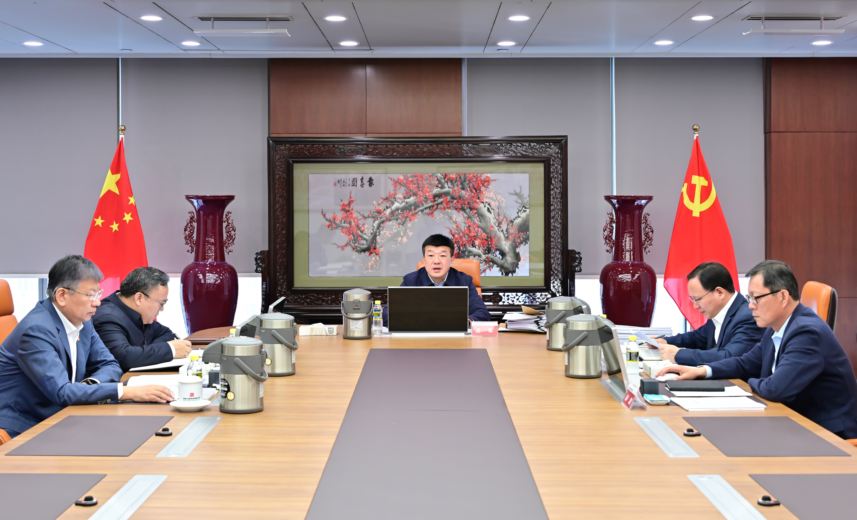 本网讯 4月11日,PA视讯集团有限公司党组书记、董事长吕军主持召开党组会议,传达学习习近平总书记重要讲话、重要文章、重要论述精神,研究贯彻落实措施。集团公司领导张传江、余波、曲波、王海腾参加会议。