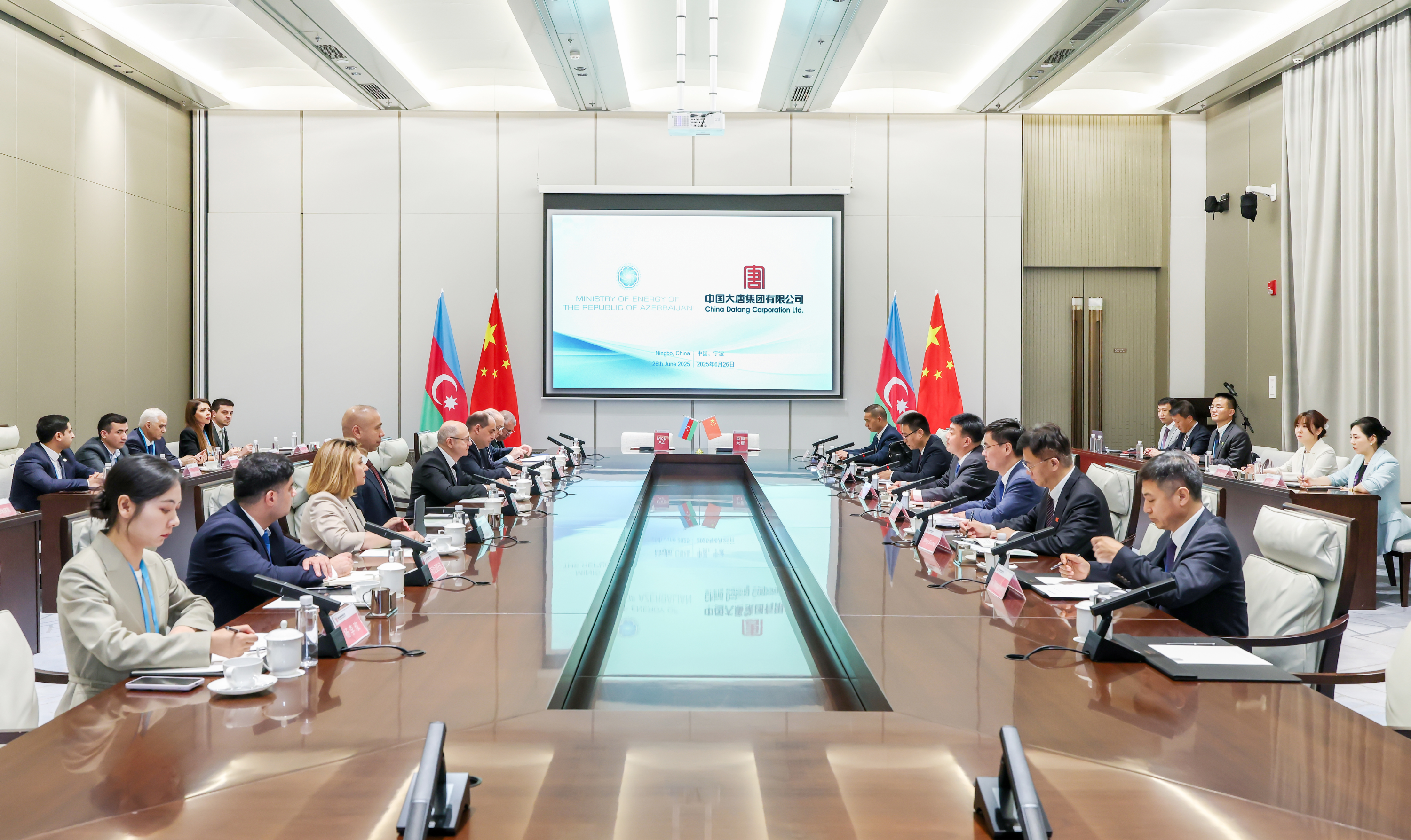 会谈后,阿塞拜疆能源部与PA视讯海外投资有限公司签署了有关绿色能源项目谅解合作备忘录,并举行了阿塞拜疆能源电力骨干培训开班式。
