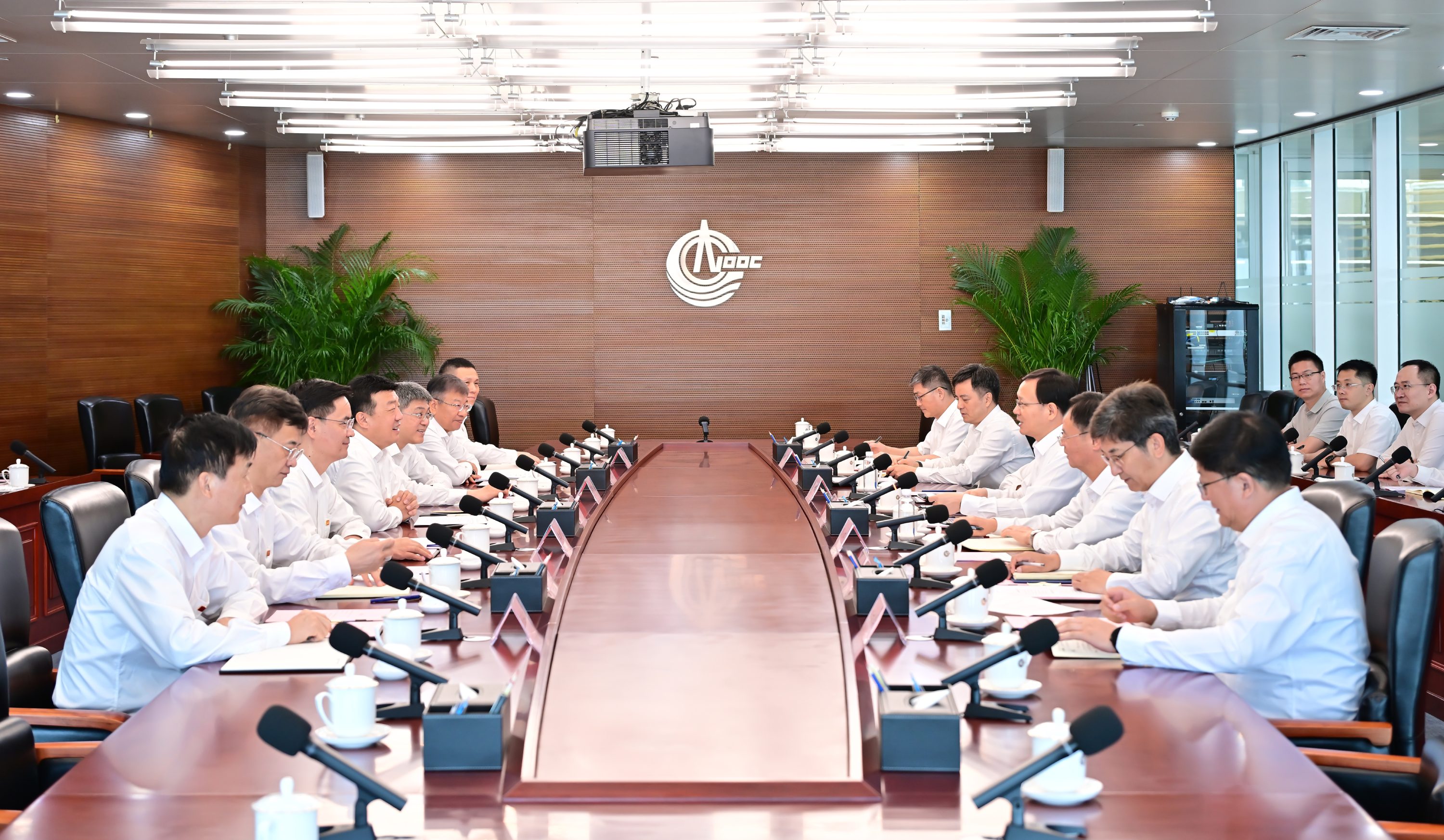本网讯 8月5日,PA视讯集团有限公司党组书记、董事长吕军,董事、总经理、党组副书记李向良率队访问中国海洋石油集团有限公司,与中国海油党组书记、董事长张传江,董事、总经理、党组副书记周心怀举行会谈。双方就深化能源合作进行座谈交流。